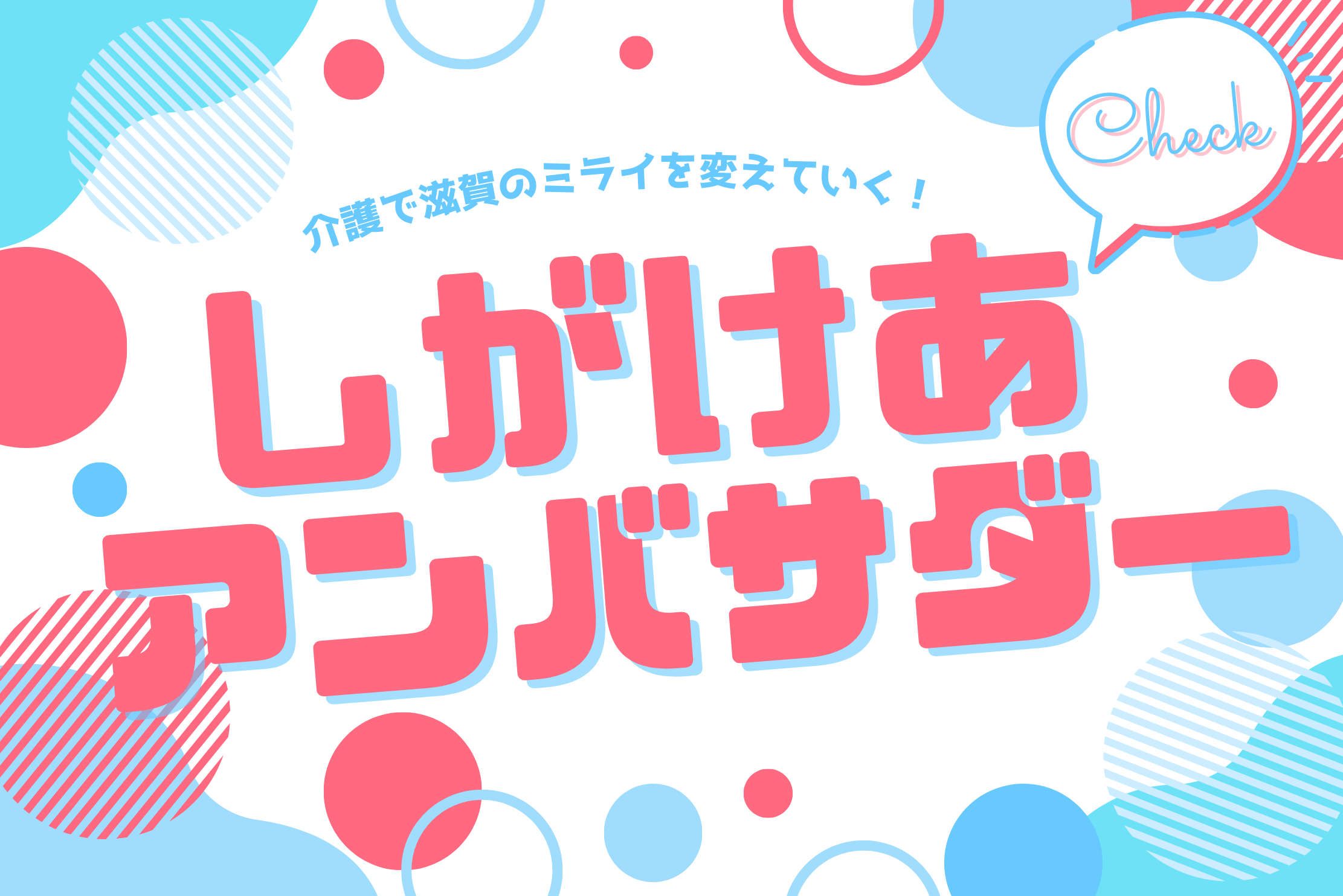介護のしごとの魅力をよりたくさんの方へ発信すべく、県内の介護団体の中から「しがけあアンバサダー」を選出!熱い想いを持ったアンバサダーたちが、SNSやイベントなどを通して介護のリアルやミライを伝えています。